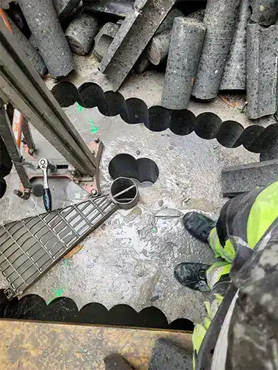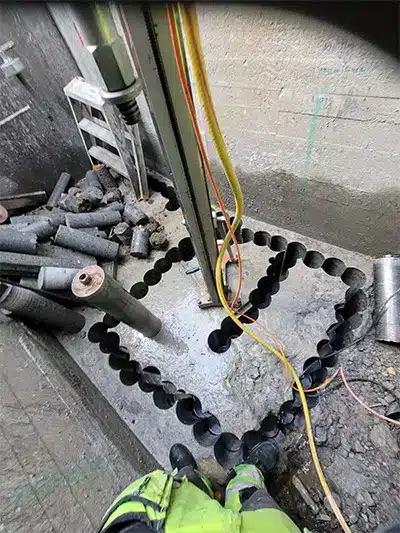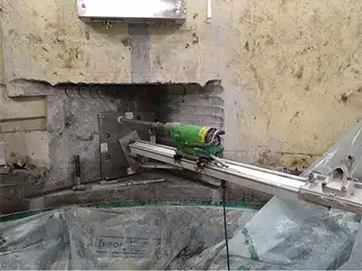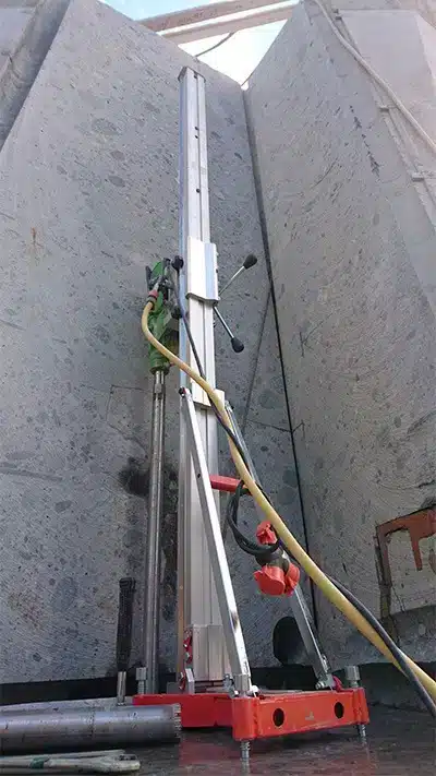 Vi har utrustningar för att borra alla dimensioner upp till diameter Ø1000 mm. Hur djupt vi kan borra beror bland annat på håltagningens läge, material och dimension.