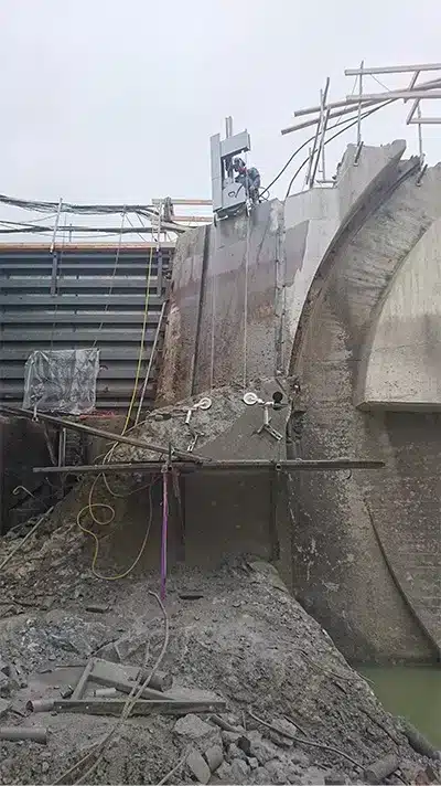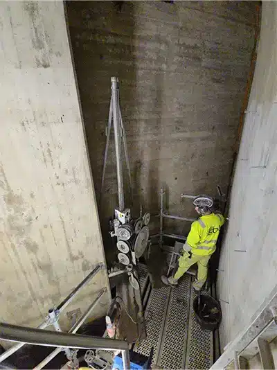 För sågning av vägg, valv och andra konstruktioner används väggsågsutrustningar som fästs på materialet och styrs med fjärrkontroll,
