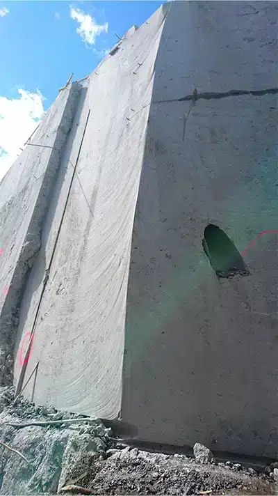 Wire-sågning används när materialet är tjockt, eller att läget för håltagningen inte är lämpligt för klingsågning. Med wire kan vi såga i princip hur tjocka konstruktioner som helst.